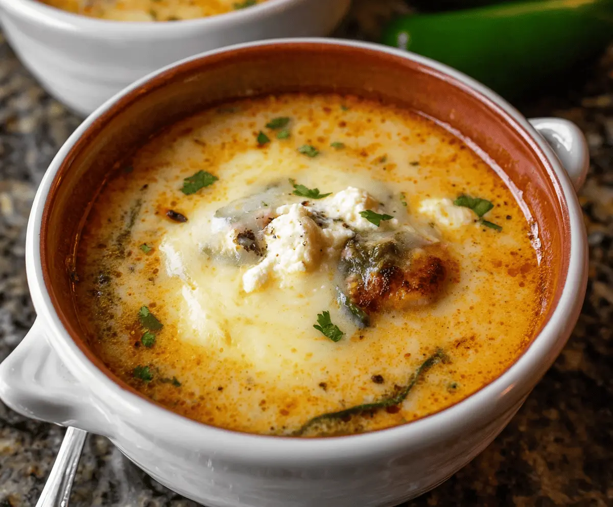 This soup captures the smoky spice of roasted poblanos with a rich, cheesy finish, just like traditional chile rellenos. Enjoy it with warm tortilla chips or slices of crusty bread for the perfect meal!