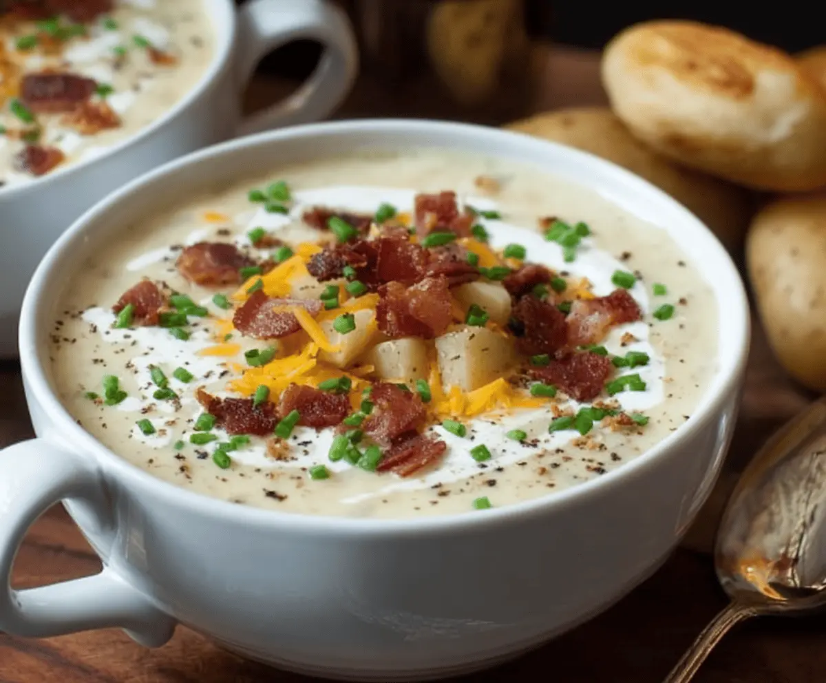 This creamy bacon potato soup is pure comfort in a bowl! It’s filled with tender potatoes, crispy bacon, and a rich, velvety broth that warms you right up.