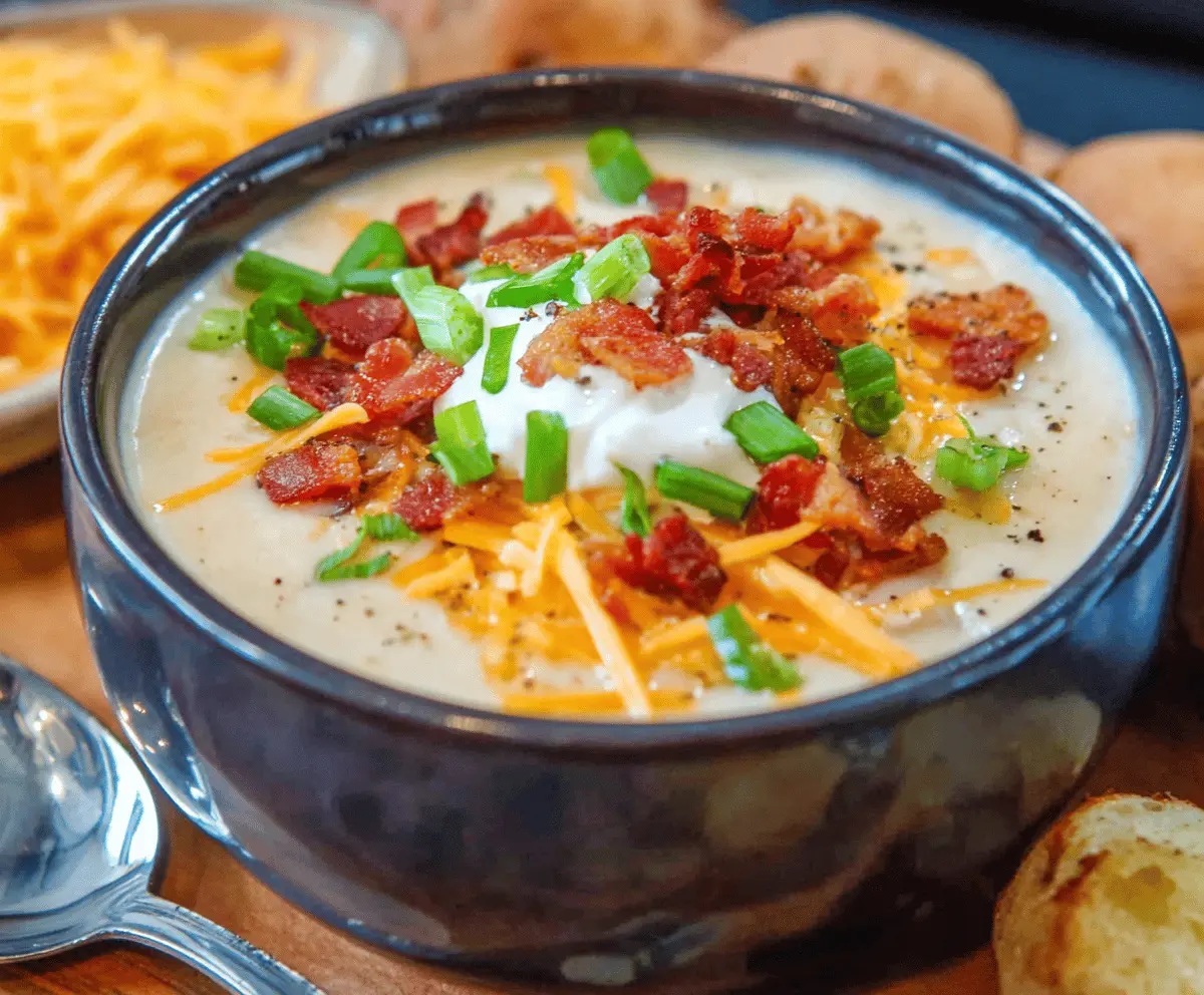 This Crockpot Baked Potato Soup is creamy and comforting, packed with tender potatoes and topped with cheese, bacon, and green onions. It’s like a warm hug in a bowl!