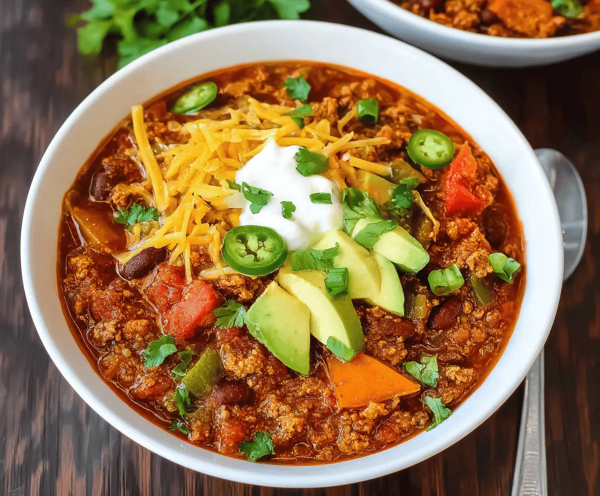 Before serving, taste your chili and adjust the seasoning if needed. Now you’re ready to serve it hot! Ladle it into bowls and add your desired garnishes—shredded cheese, avocado, a dollop of sour cream, fresh cilantro, and jalapeño slices will make it even more delicious!
