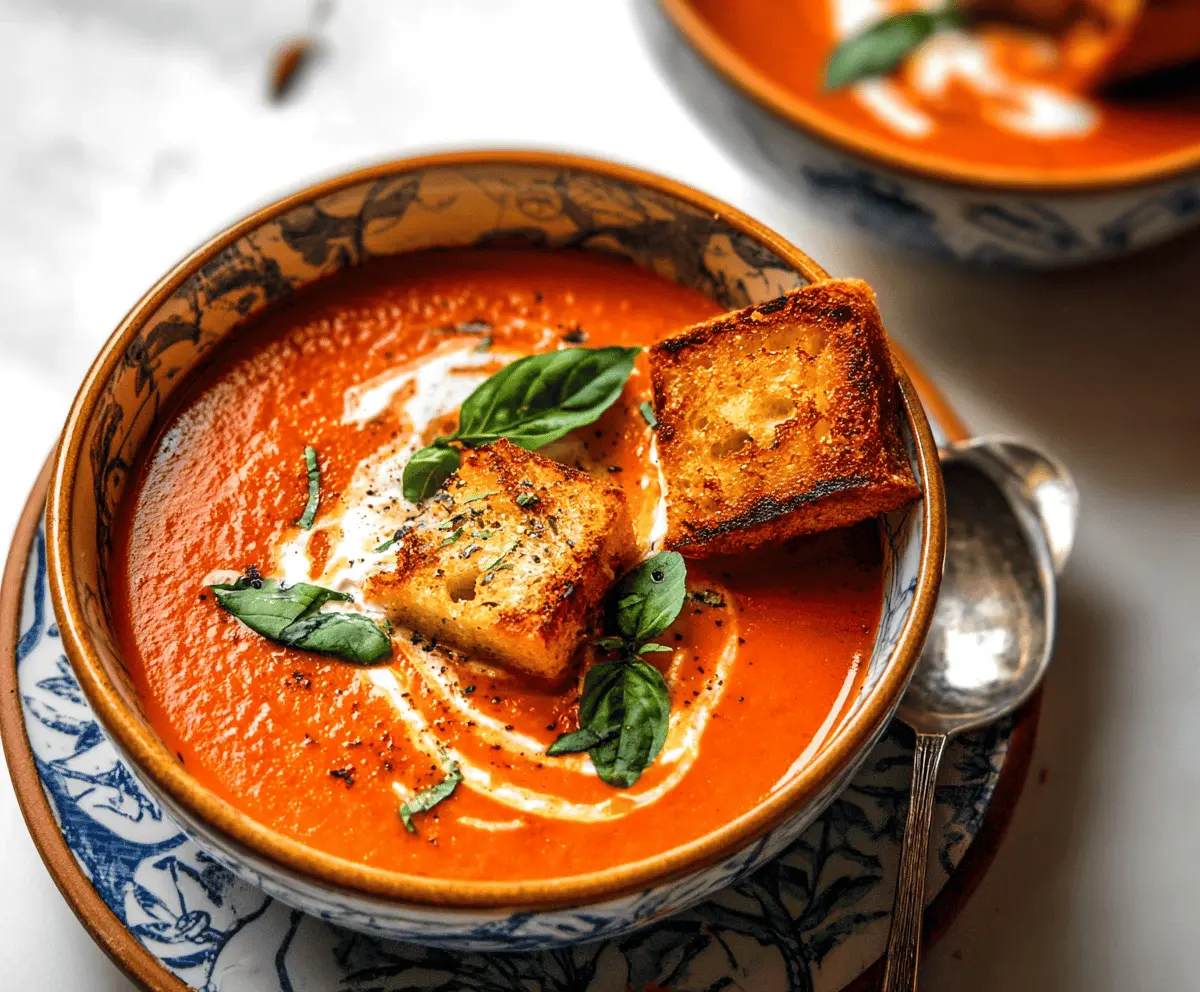 Serve hot and garnish with fresh basil leaves. Add some croutons on top for an extra crunch. Enjoy your comforting homemade roasted tomato soup!