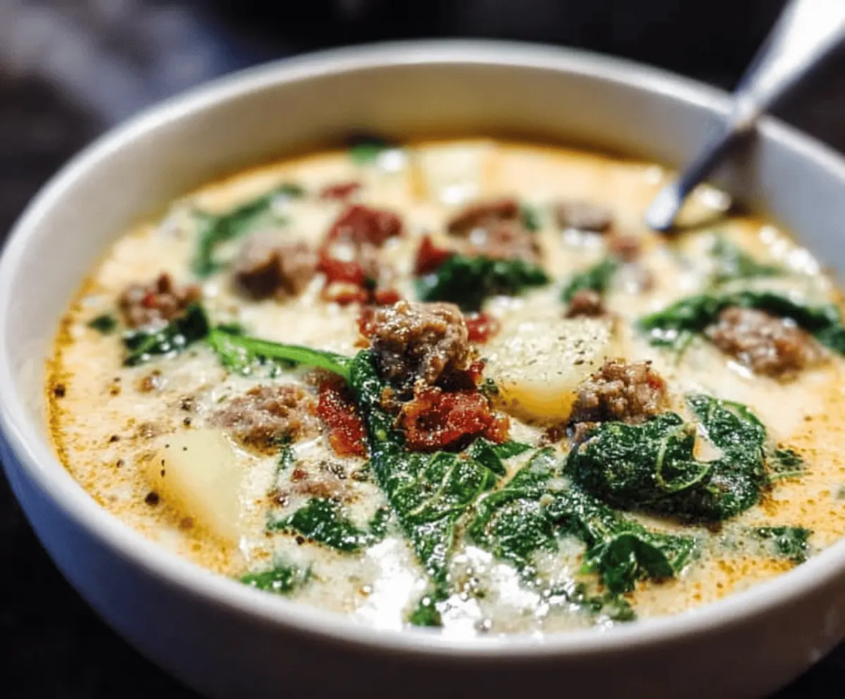 This creamy, hearty soup combines savory sausage, tender potatoes, and fresh kale in a flavorful broth — perfect for warming up on a cold day!